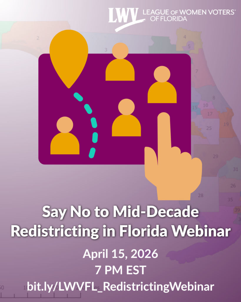 LWVFL will host a webinar to help inform League members and the public about mid-decade redistricting.