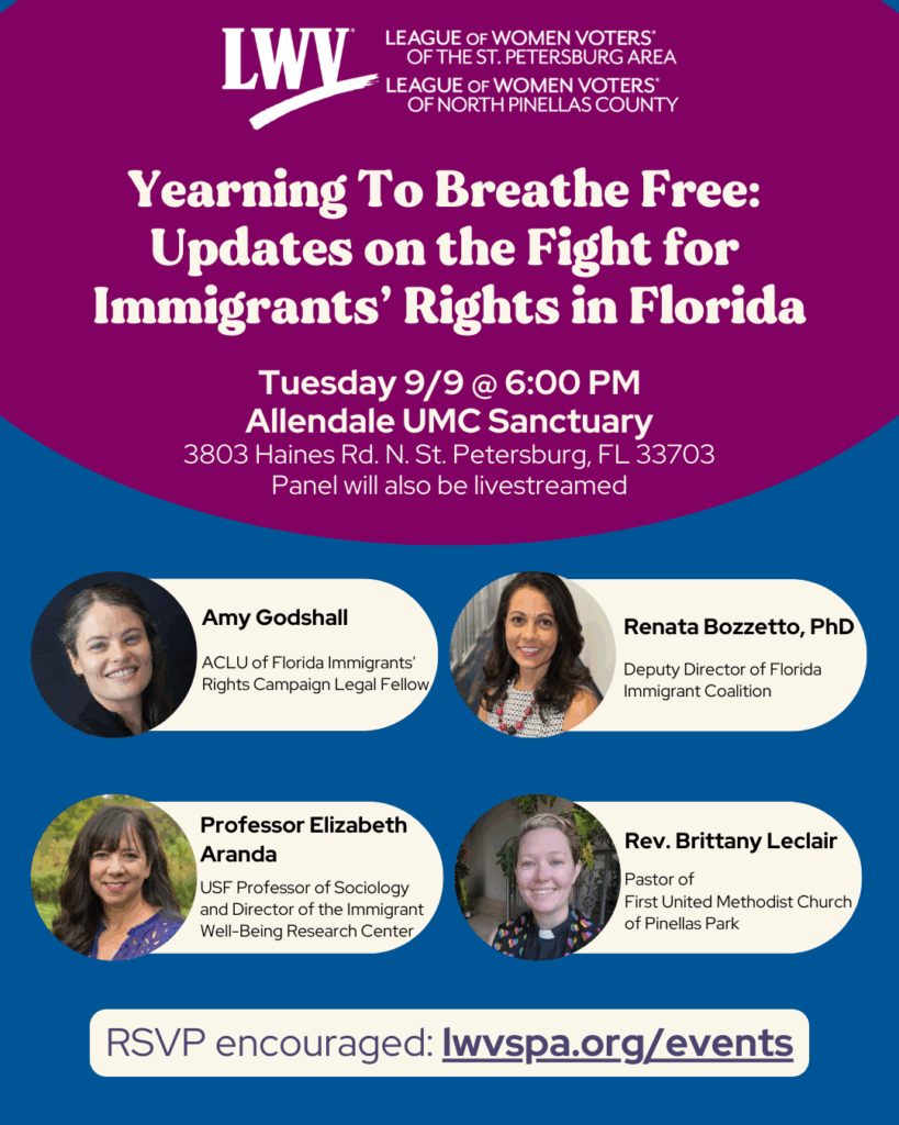 Florida’s immigration landscape is rapidly shifting. Join us for a timely conversation with advocates and community leaders as they break down the latest policy changes, enforcement trends, lawsuits, and their real-life impact on immigrant communities. Whether you’re an organizer, concerned citizen, or ally, this panel will provide the insights and tools you need to stay informed and take action for a more just and welcoming Florida.